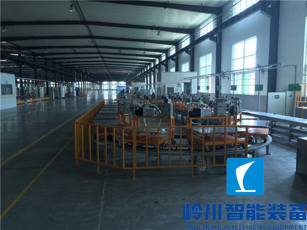 必一运动空气源热泵装配生产线系统----空气源热泵自动化生产线输送系统--环形抽真空线